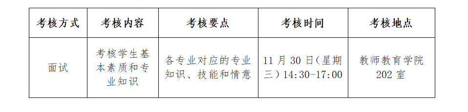 申请学生的总评考核成绩按高分到低分的顺序(计算方式)确定,考核结果提交学院党政联席会议审定通过后,在教师教育学院网站通知公告栏“http:/index/tzgg.htm”,公示5个日历天。