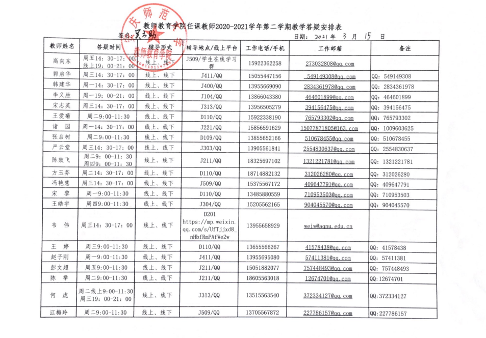 taptap点点官方网站任课教师2020-2021学年第二学期答疑时间安排表