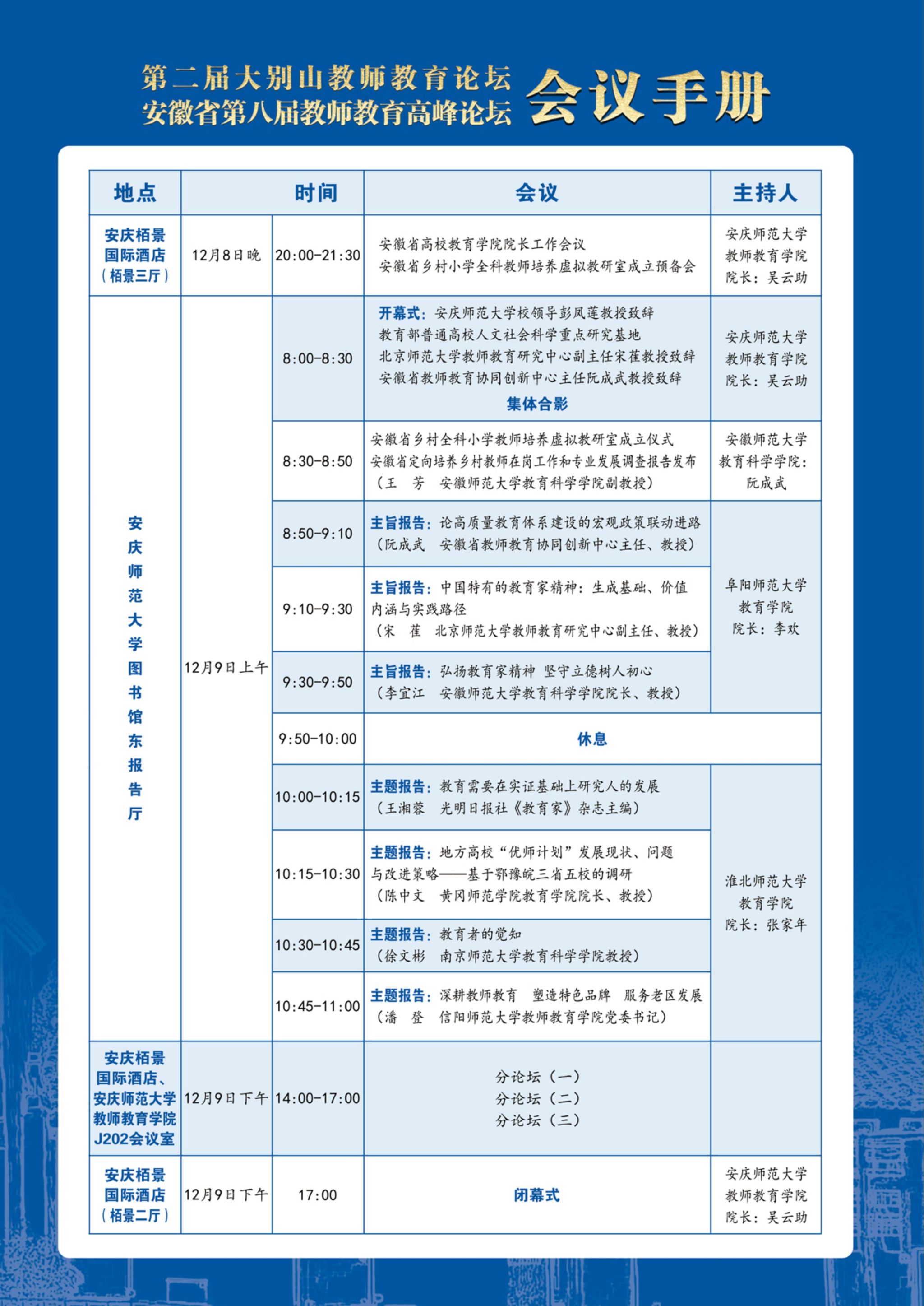 第二届“大别山教师教育论坛”暨安徽省第八届教师教育高峰论坛会议手册