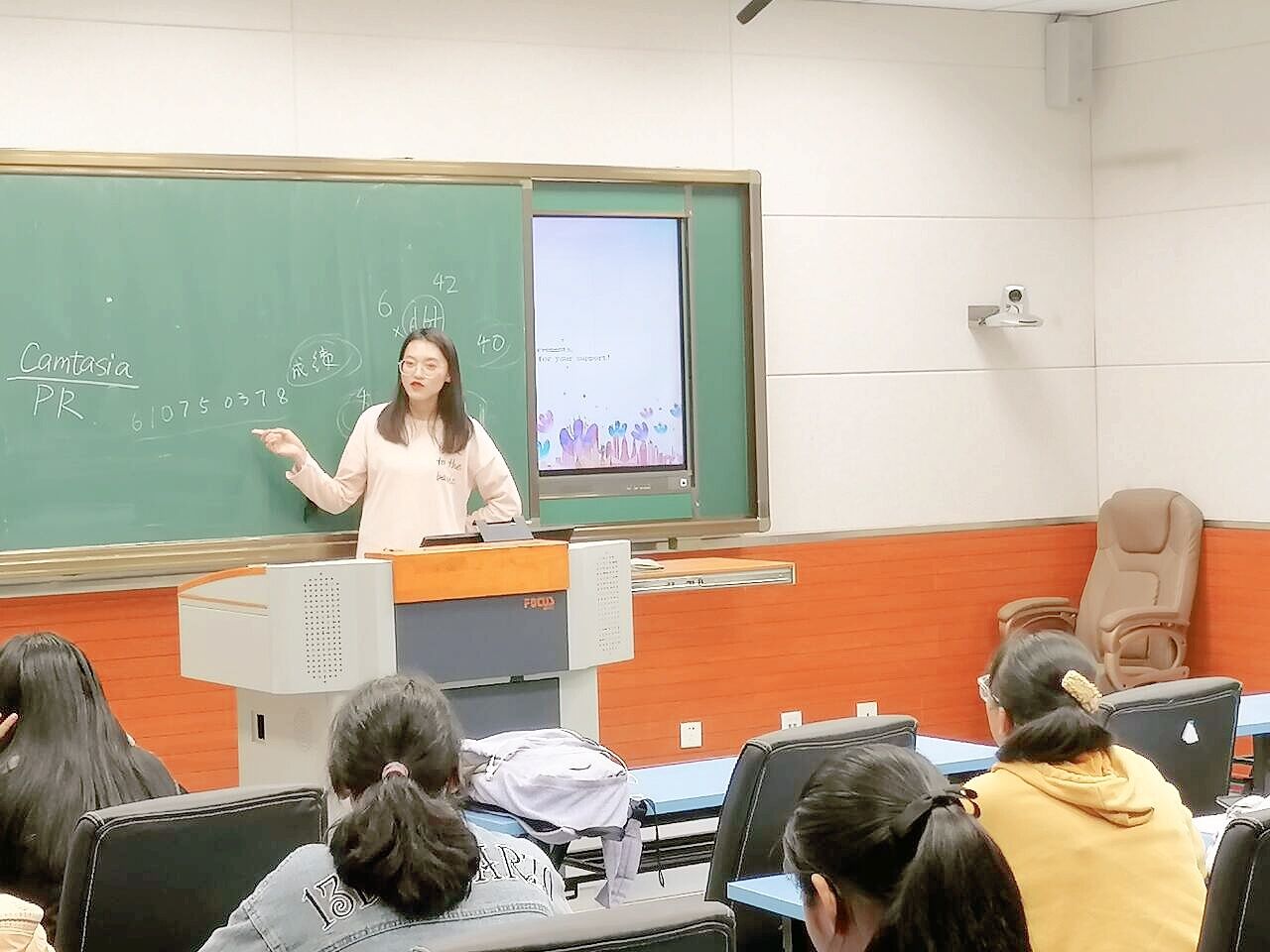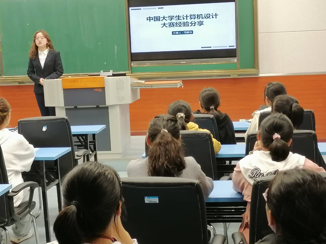 随后,2019级范静怡同学详细分享了她在中国大学生计算机设计大赛和安徽省高等学校师范生教学技能竞赛选拔赛上的参赛经验和学习经历,2019级齐铭、许程娟两位同学也就一年来的在校学习、生活等方面的要点进行了分享,回答了2020级新生关注的热点问题。