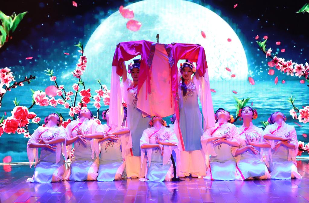 本次晚会分为“春华秋实”、“‘疫’起同行”和“大道之行”三个篇章,包含相声、舞蹈、歌曲等14个节目。撑着红色油纸伞、带有浓浓中国风的开场舞《China》拉开了晚会序幕。佤族民歌搭配节奏感十足的Hip-hop舞蹈,一起一跳中尽显民族风情,瞬间“点燃”了现场。