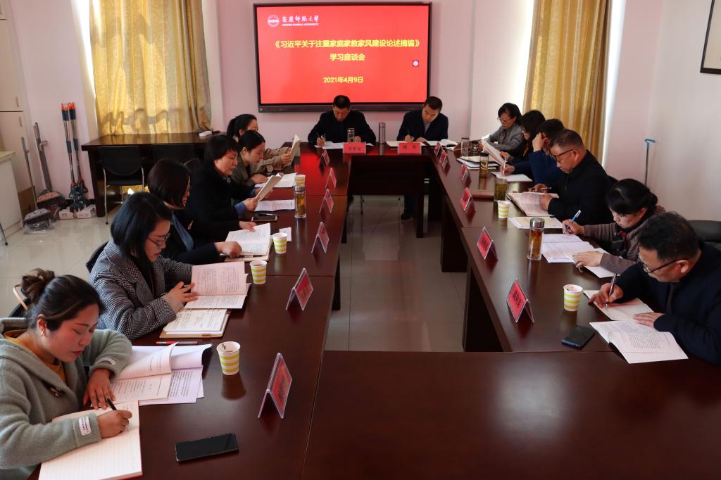4月9日,taptap点点官方网站taptap点点官方网站组织安庆家庭教育研究指导中心部分研究人员召开《习近平关于注重家庭家教家风建设论述摘编》学习座谈会,安庆市妇联主席焦玲、副主席张莉、我校“女生工作坊”负责人陈银凤应邀出席会议。安庆教育研究指导中心理事会成员和学术委员会委员参加会议,会议还邀请了安庆市委党校、安庆市家庭教育讲师团部分教师参加会议。