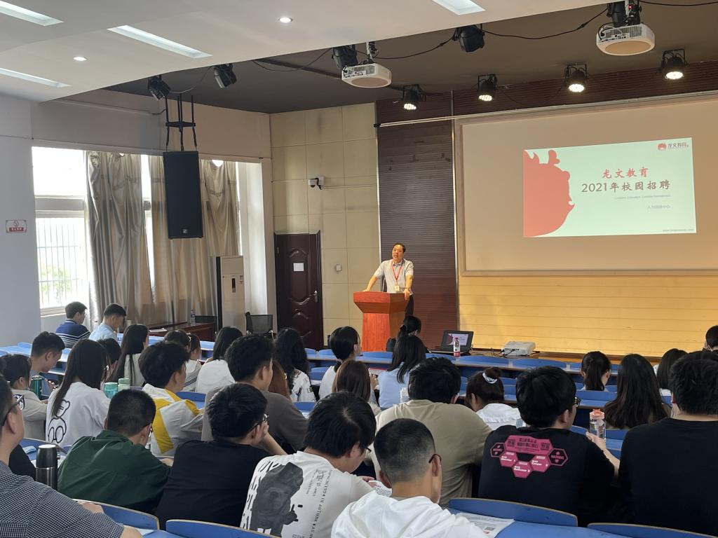 5月13日上午,taptap点点官方网站在我校龙山校区D楼111教室举办了“潮职来袭,未来可期”专场招聘会,招聘会邀请了苏州龙文教育企业前来介绍岗位情况,taptap点点官方网站党委书记陈志超、副书记许世平等领导和2017级及2018级近百名学生聆听了招聘会。