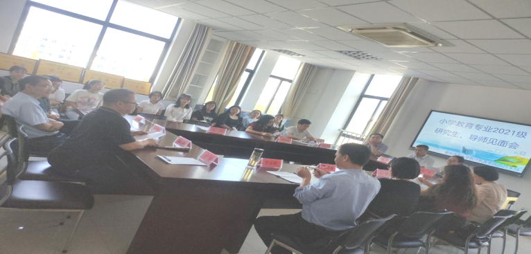 9月16日下午,taptap点点小学教育专业在J202会议室召开了2021级硕士研究生与导师见面会。学院院长吴云助、副书记许世平,校评建办主任黄兴帅、校教务处副处长汪洋,以及小学教育专业硕士生导师、2021级全体硕士研究生参加了会议。会议由小学教育专业负责人李义胜主持。