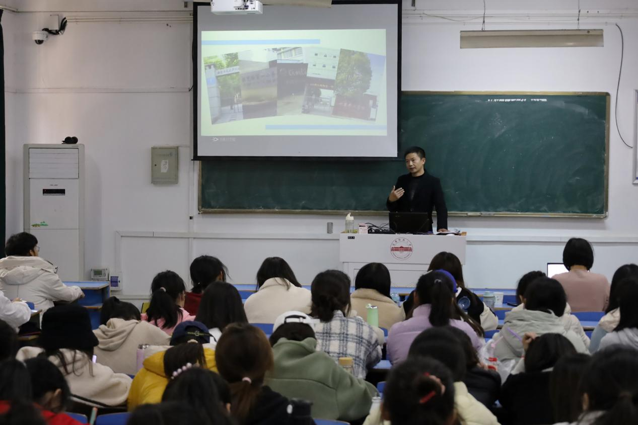 张翔老师自述到:“为孩子的未来而教,是我成为教师的意义,也是我多年的目标。”1999年毕业至今,他辗转多所乡村学校任教,学校之间各有特色,教学方式也有所不同,自己潜心钻研,不断提高教学技。在课上,自己积极激发学生学习兴趣,在课下,自己与其他教师采用组队互助模式,促进彼此教学能力提升。张翔通过播放我校两位校友在乡村学校实习培训的视频,向学生们展示了乡村学校的具体生活。同时,他指出乡村学校教师队伍建设尚有不足,师资力量仍较为薄弱,希望越来越多的人关注乡村教育,投身乡村教育。