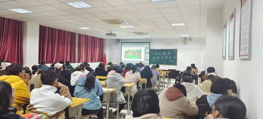 会上,邵玉婵分享了学习期间去杭州幼儿园的体验与感受,介绍了申花幼儿园、江南幼儿园、红缨幼儿园、倍蕾幼儿园的环创与游戏、教学活动,分析了学前教育专业的明朗前景。同时,她建议同学们:认真学习,尤其重视英语学习;广泛阅读,积极拓宽专业视野;坚定信念,你所遇见的都是最好的。韩梦君分享了学习学前教育专业的感受,从自身经历鼓励同学们坚持学习,同时推荐了一些学习软件,并提出了中肯的建议:珍惜时间,多留心早打算;循序渐进,脚踏实地;学好专业课,坚持练习。同学们与两位学姐积极互动。韩梦君讲述了自己的考研经历,用切身体会告诫同学们,要找到学习动力。邵玉婵分享了大学期间自己如何战胜迷茫的故事,鼓励同学们坚持努力,找到适合自己的学习方法,学会自主学习。