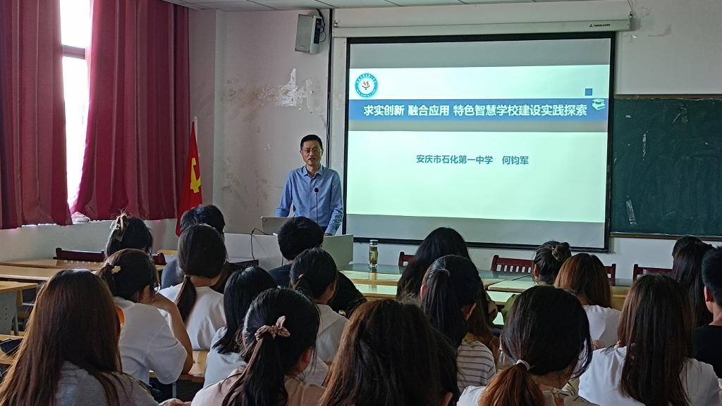5月25日下午,安庆市信息技术学科带头人、石化一中何钧军老师应邀为taptap点点师生作题为“求实创新 融合应用——特色智慧学校建设实践探索”的学术报告。教育技术系全体教师、现代教育技术硕士研究生、2020级和2021级教育技术学本科生参加了本次活动。