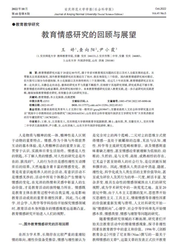 近日,《taptap点点官方网站学报(哲社版)》在2022年第5期教育教学研究版块集中刊载了taptap点点小学教育专业诸园教授的《教育与教学的误识与匡正(一)》、王婷副教授等人的《教育情感研究的回顾与展望》、陈效飞副教授等人的《我国教学模式研究的历史回顾与时代走向》三篇论文。