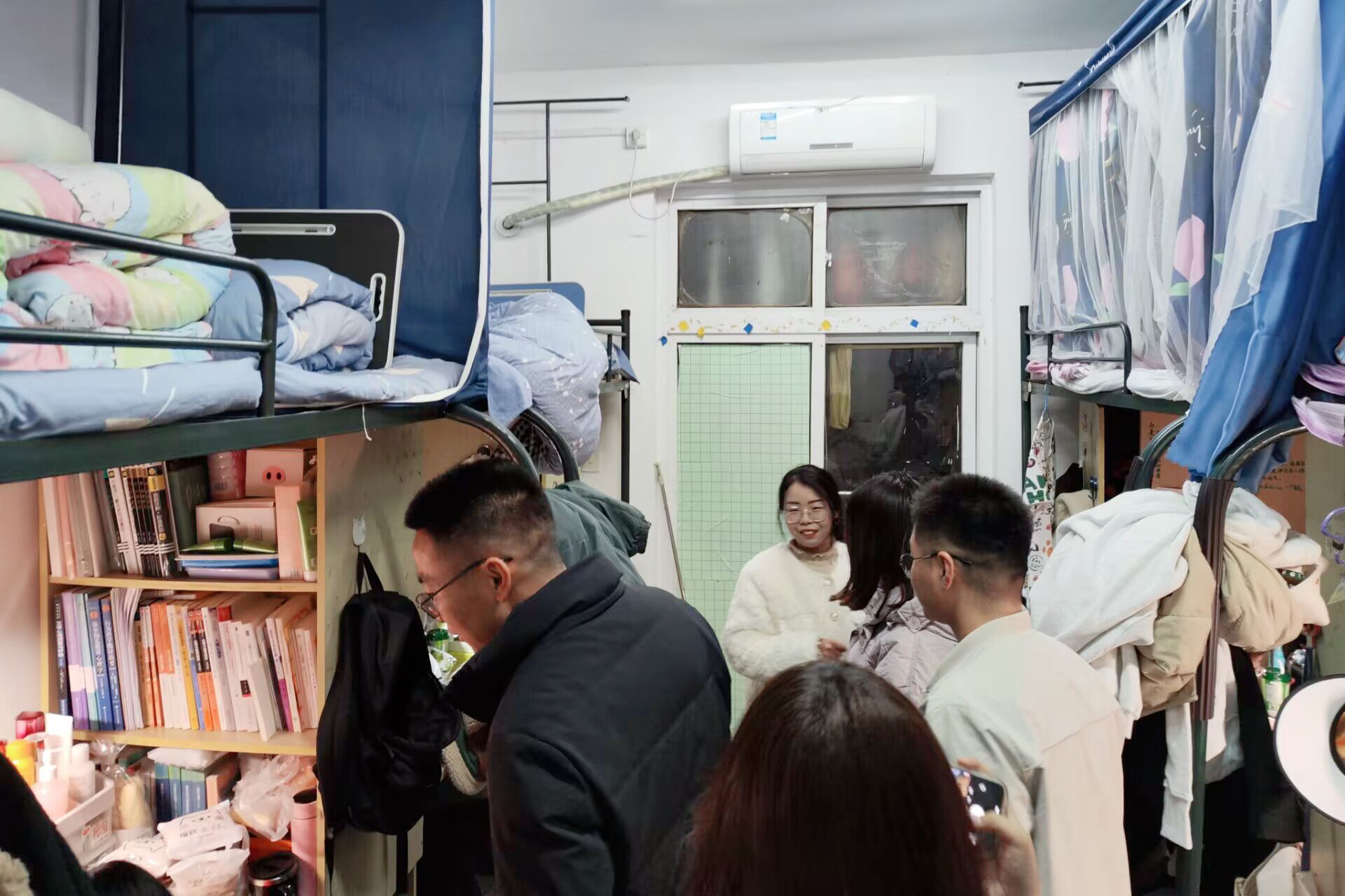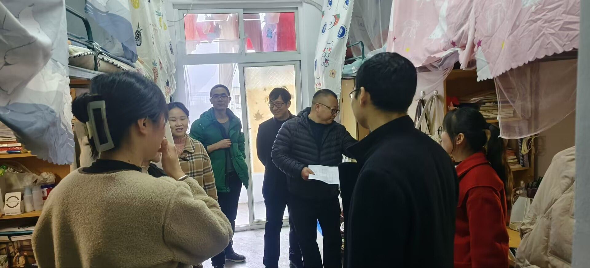 排查过程中学院领导老师与同学们亲切交流。吴云助对宿舍文明建设、环境卫生和日常作息提出相关要求,强调同学们要遵守学校宿舍管理规定,要注意财产安全、用电安全和人身安全,建议加强寝室清洁管理,注重培养良好的生活方式,在宿舍相处中要友爱互助,发挥好室友之间相互督促、共同进步的作用,并勉励同学们勤奋学习,做好学习和就业规划,营造良好的学习氛围。