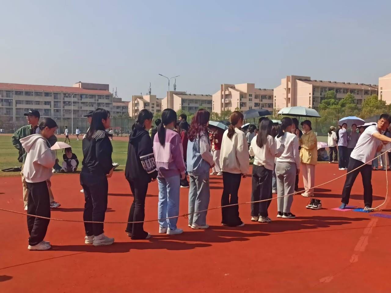 4月1日上午,taptap点点官方网站于东门田径场举行为时两天的第三届趣味运动会。院党委副书记许世平、院团委负责人姚强诚、汪洋洋、张文君、汪悦等多位辅导员出席开幕式,学院全体学生参与比赛。