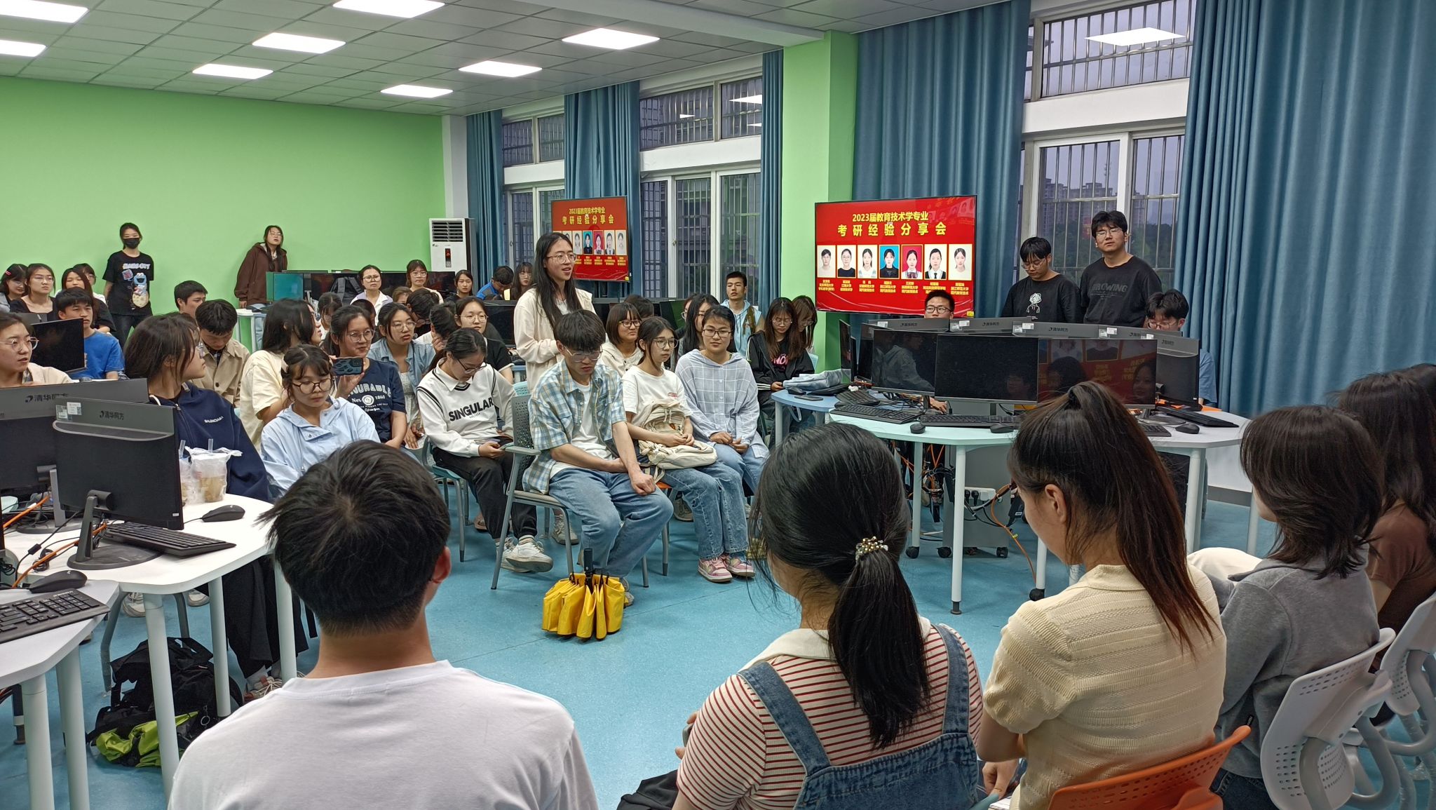 4月21日,taptap点点教育技术系在D206教室举行考研经验分享交流会。会议邀请2019级教育技术学专业七名拟录取研究生的同学作考研经验分享,活动吸引了2020级、2021级、2022级共70余名学生参与。活动由韦伟老师主持。
