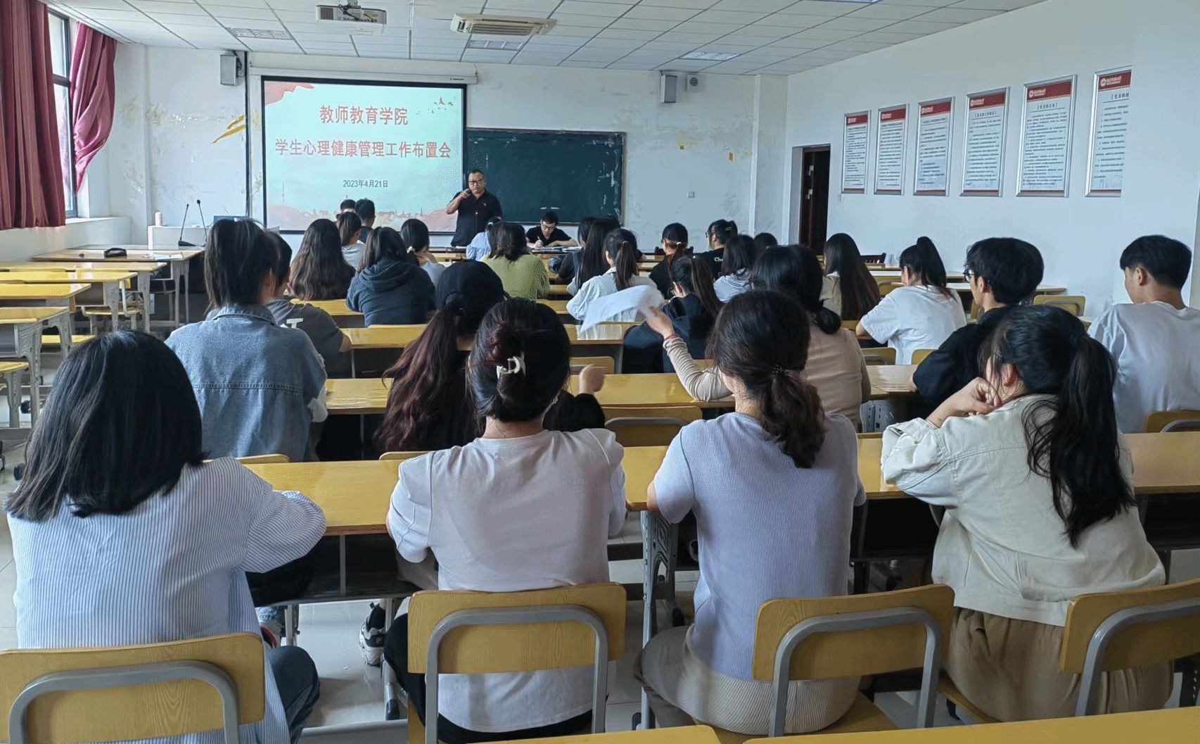 随着心理健康教育月的即将到来,为了更好服务大学生心理健康,4月21日中午,taptap点点于J305开展学生心理健康教育管理工作布置会。此次会议由学院党委副书记许世平主持,院长吴云助讲话,心理健康专管老师汪洋洋对心理委员进行业务培训,学院全体各班级心理委员积极参加。