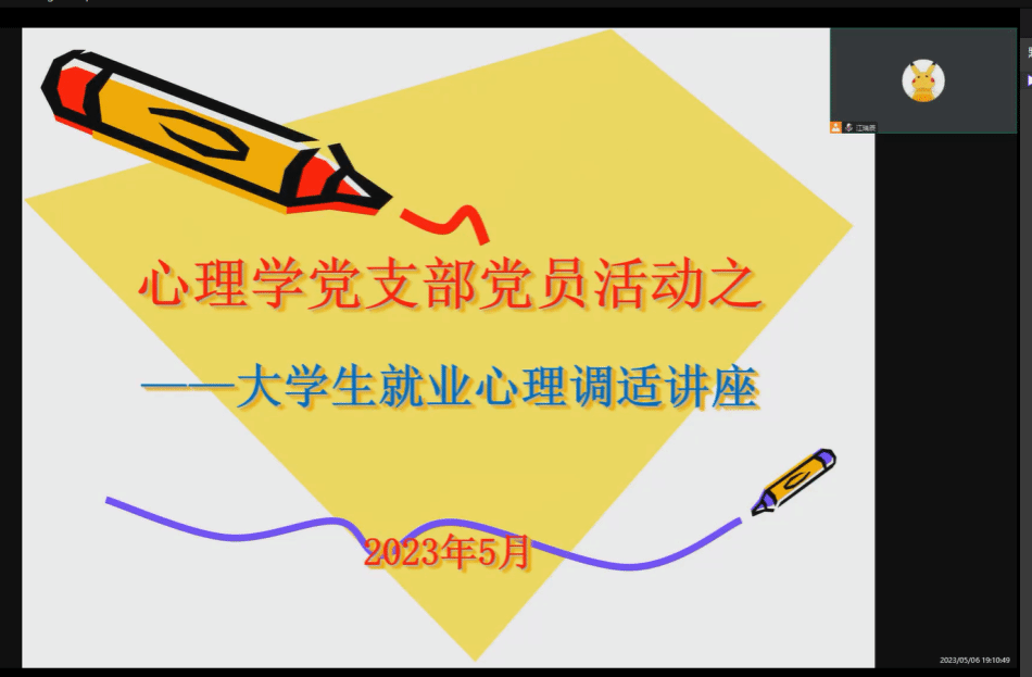 为发挥党员的先锋模范作用,以实际行动践行“我为群众办实事”,心理学党支部于5月6日晚7点开展了线上“毕业生就业心理调适”主题讲座。讲座由心理学党支部江瑞辰老师主讲。taptap点点官方网站与电子工程与智能制造学院部分毕业生参与了讲座。
