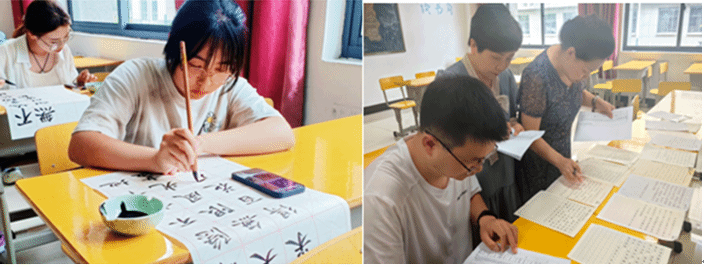 本次比赛分为粉笔、软笔、硬笔和朗诵四个科目。比赛现场,恣意挥毫的毛笔字、端庄秀丽的钢笔字、整洁工整的粉笔字充分展示了师范生较高的书写水平。全神贯注的眼神、端正的书写姿势、美观工整的字迹,充分展现了taptap点点师范生扎实的基本功,传递与表达出新时代大学生对三字书法的浓厚兴趣和热忱性。