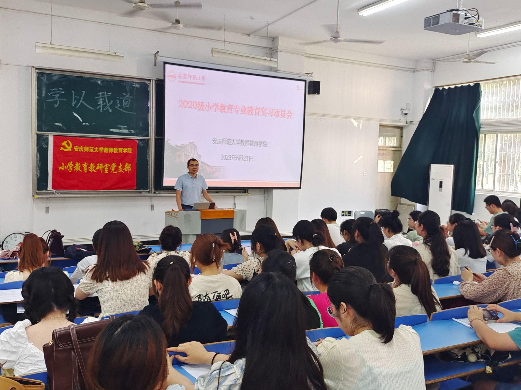 6月21日,小学教育教研室党支部在D101开展了2023年师范生教育实习动员会,活动由支部书记陈效飞主持,学院副院长王皓宇、支部全体党员教师、2020级小学教育专业全体师范生及辅导员参加。