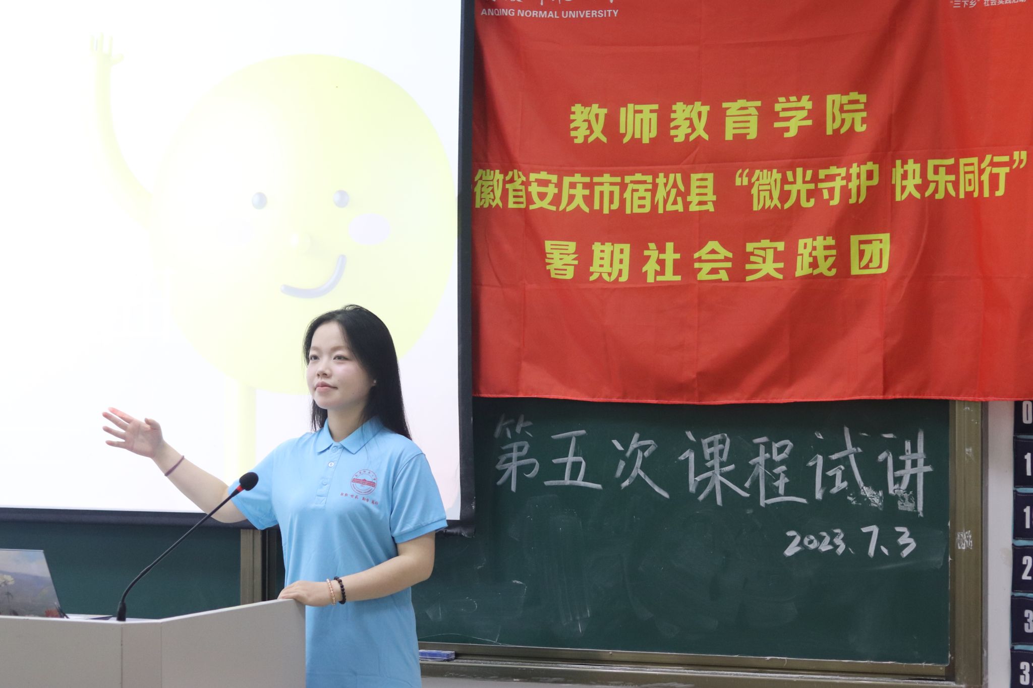 实践团积极开展试讲和文艺汇演彩排活动。试讲内容包含安全常识、舞蹈、科学教育、妙笔手工、手语歌曲与趣味书法在内的多门特色课程。每位队员对课程内容进行了生动有趣地讲解和演练。指导教师和团队成员从教学技能、课程设计等方面提出修改建议,反复磨课以逐步完善课程。