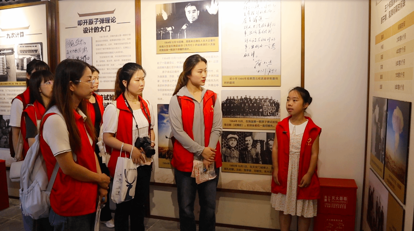 实践团邀请在林峰小学就读的邓氏子孙邓容作为讲解员,为实践团讲述邓稼先为祖国核事业发展贡献一生的事迹。实践团参观“两邓故居”后,向馆内到访游客、展馆工作人员、和周边村民开展调研及宣讲科普工作,内容主要包括对中国核工业发展历程、“两弹一星”精神、邓稼先事迹等。