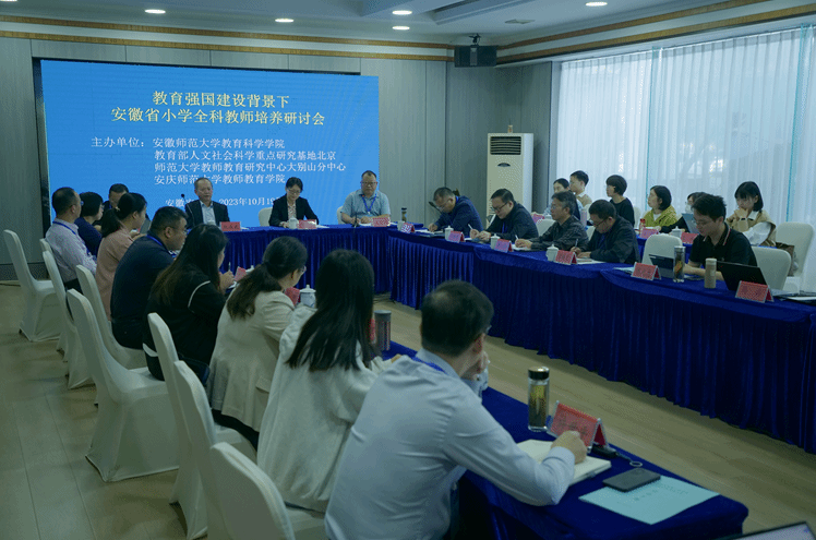 10月19日,由教育部人文社会科学重点研究基地北京师范大学教师教育研究中心大别山分中心、taptap点点官方网站taptap点点官方网站联合安徽师范大学taptap点点官方网站主办的“教育强国建设背景下安徽省小学全科教师培养”研讨会在安庆召开。长江学者特聘教授、安徽师范大学阮成武教授,以及省内其他高校的相关院长、系主任等50余位专家学者出席会议。
