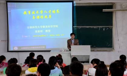 4月18日下午,安徽师范大学taptap点点官方网站教育技术系教授、硕士生导师张新明教授来我校做了一场题为“教育技术学人才培养与课程改革”的讲座,教育学院副院长马俊教授、副院长韩建华副教授,教育技术学教研室的全体教师以及2009级、2010级、2011级教育技术学专业学生聆听了讲座。