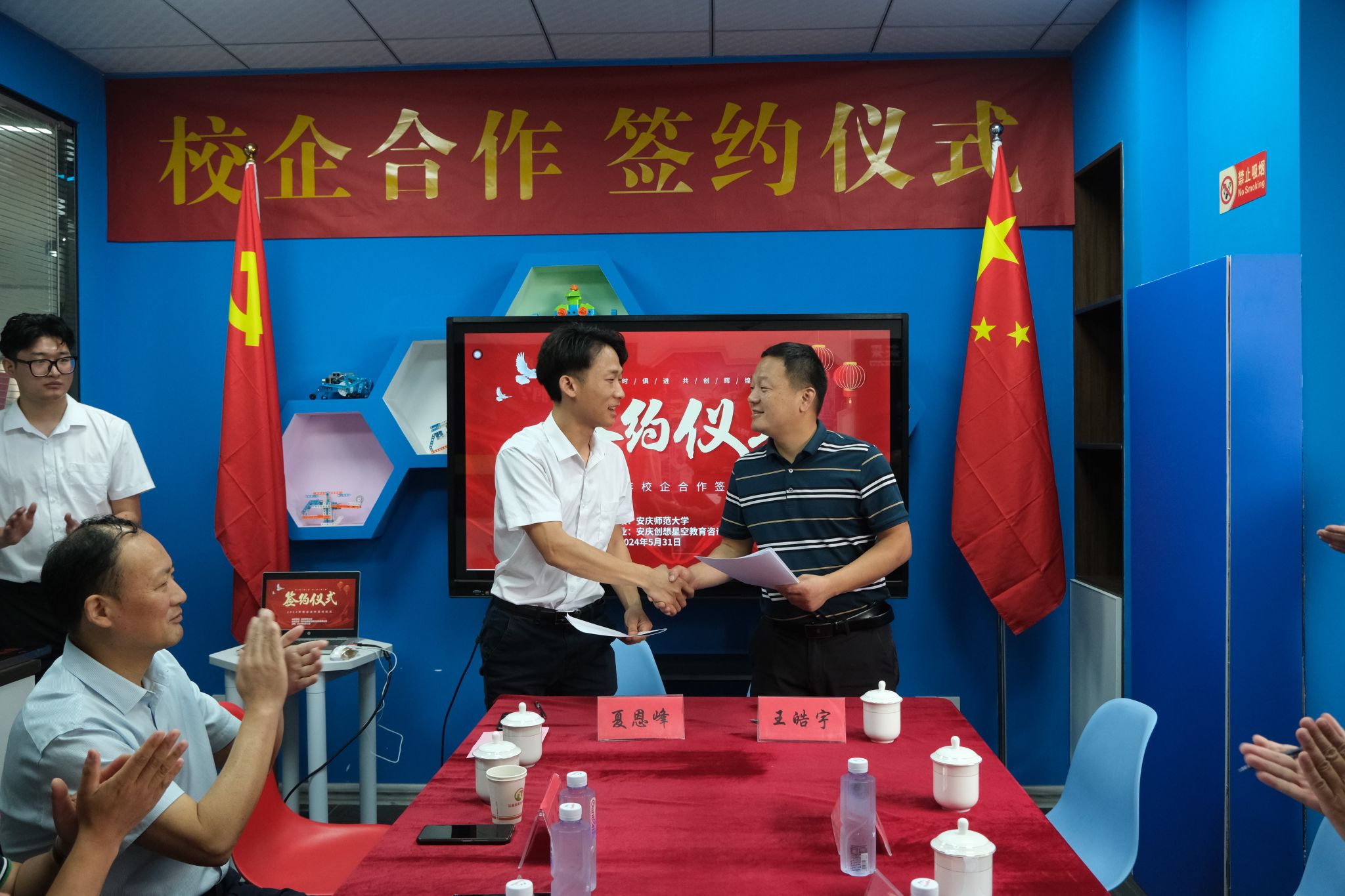 2024年5月31日,taptap点点官方网站与安庆创想星空教育咨询有限公司合作共建教育实践基地揭牌仪式在怀宁举行。副院长王皓宇,怀宁县科学技术协会主席董学红、副主席陈丙亮,怀宁县青少年校外活动中心主任程菊生、创想星空教育咨询有限公司CEO夏恩峰等参加本次活动,共同为实践基地揭牌。教育技术学专业韦伟、朱斌彬、万士全、查怀志等教师陪同前往。
