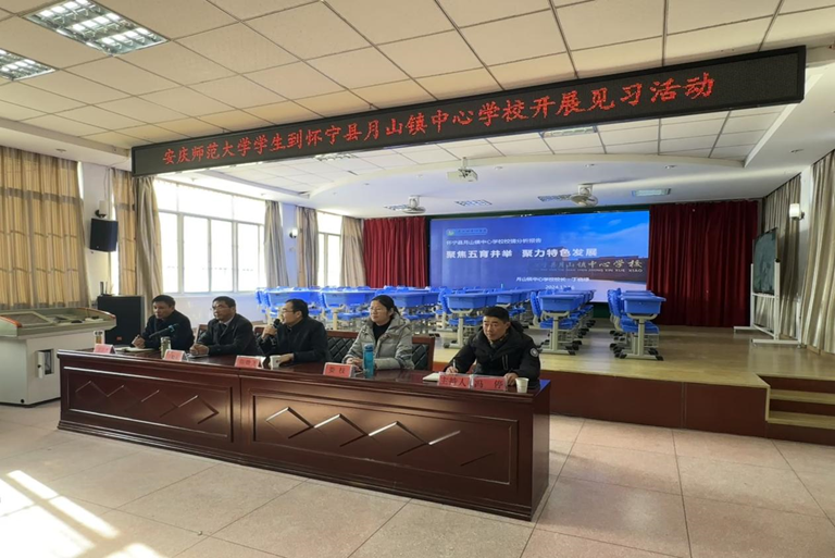 接着,月山镇中心学校党支部书记、校长丁晓禄对前来见习的师生表示欢迎并向大家介绍了学校的发展概况、办学理念、存在的问题及未来的发展规划。他指出,月山镇中心学校是全国青少年足球特色学校,全国青少年人工智能活动特色单位、省级绿色学校,安庆市科普教育特色学校。一直以来,学校秉承“诚信做人、踏实做事”的校训,以“崇尚科学、自主创新”为办学理念并力争办出“志揽明月,德攀高山”的学校特色。