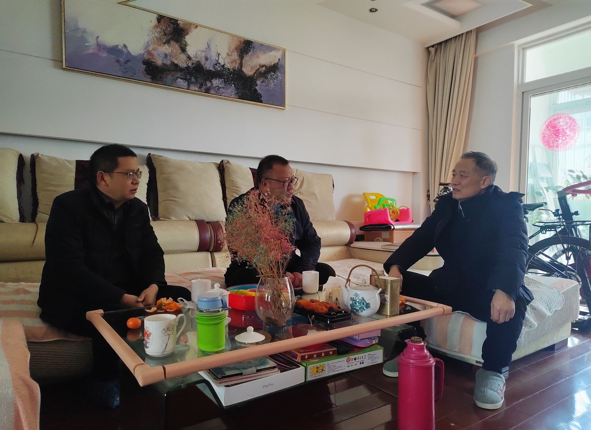在学院退休老领导家中,学院班子成员与退休老领导亲切交流、共叙家常,对他们为学院发展做出的贡献致以崇高的敬意和衷心的感谢,同时认真聆听了老领导对学院未来事业发展的意见和建议,并真诚希望老领导们一如既往地关心支持学院发展,为学院各项事业高质量发展建言献策。(撰稿、摄影:潘日余 审核:何孔蛟)