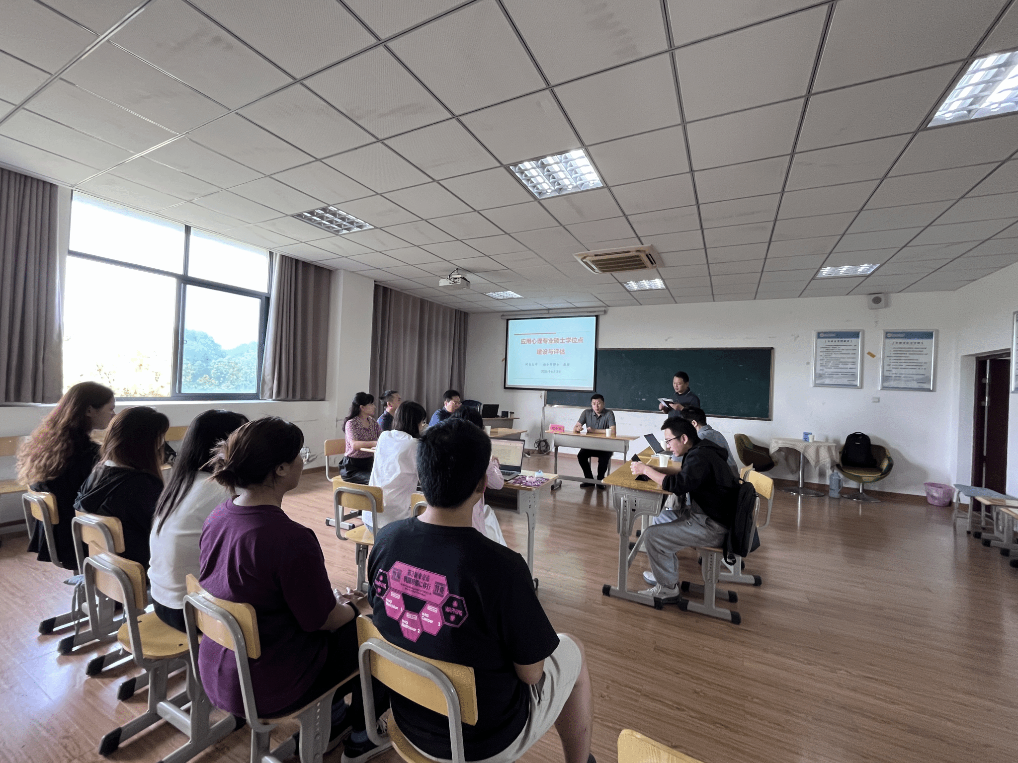 赵小军以河北大学应用心理专业硕士点建设与评估为例,阐述了学位授权点在培养方向设置、师资队伍建设、课程与实践教学以及社会服务等方面取得的建设成效,并耐心细致地解答了师生提出的问题。会议最后,宋志英作总结发言,强调要对标学位点建设方案,纾解应用心理专业建设面临的痛点和难点,提升学位点建设水平。
