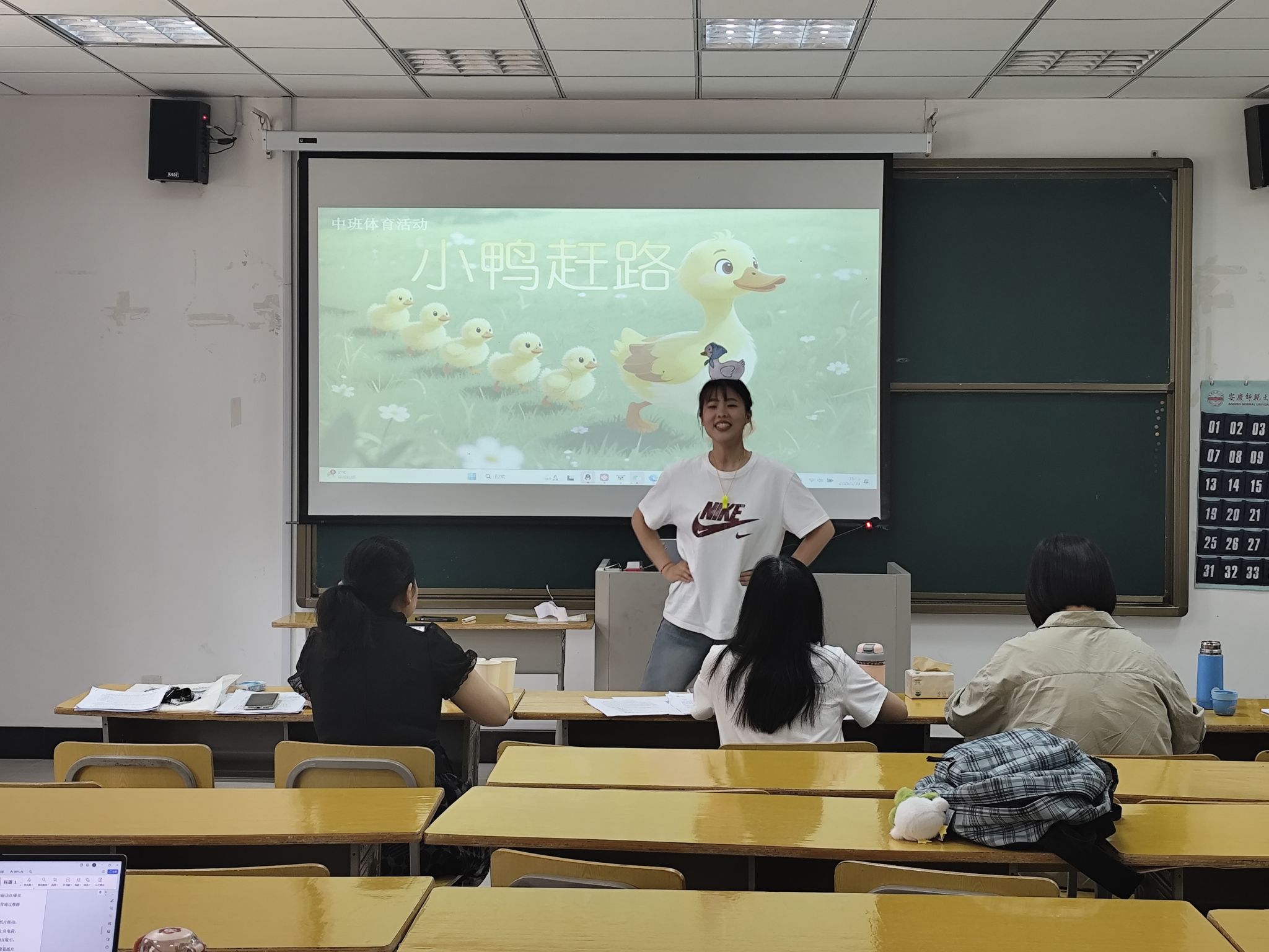 为全面提升教育硕士教育教学实践能力,选拔优秀选手参加2025年全国“田家炳杯”全日制教育硕士专业学位研究生学前教育专业教学技能大赛,5月30日,学前教育教研室在J106教室成功举办学前教育硕士教学技能竞赛院内选拔赛。选拔赛由学前教育教研室主任王颖莉主持,特邀墨子巷幼儿园杨俊梅园长、安庆市六一幼儿园罗敏副书记担任评委。