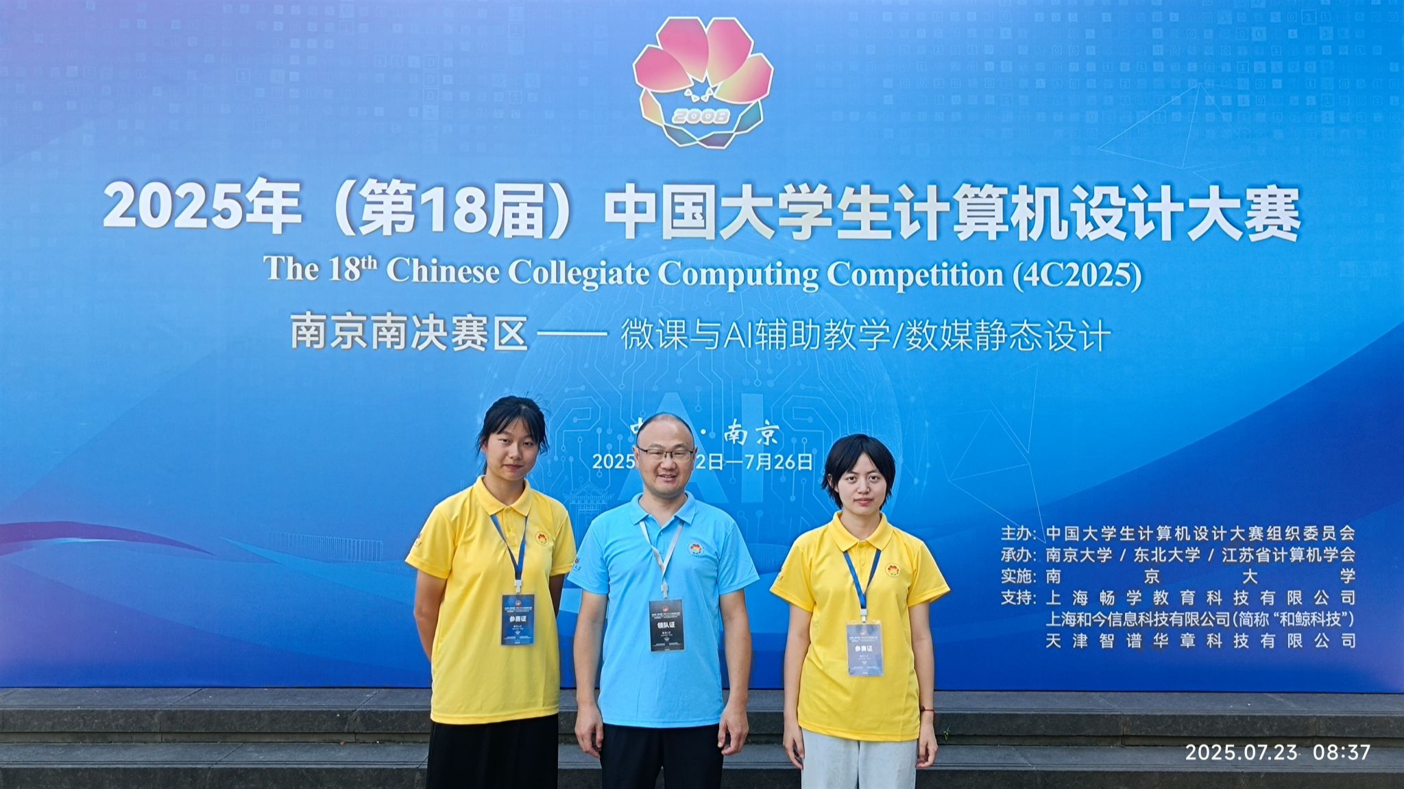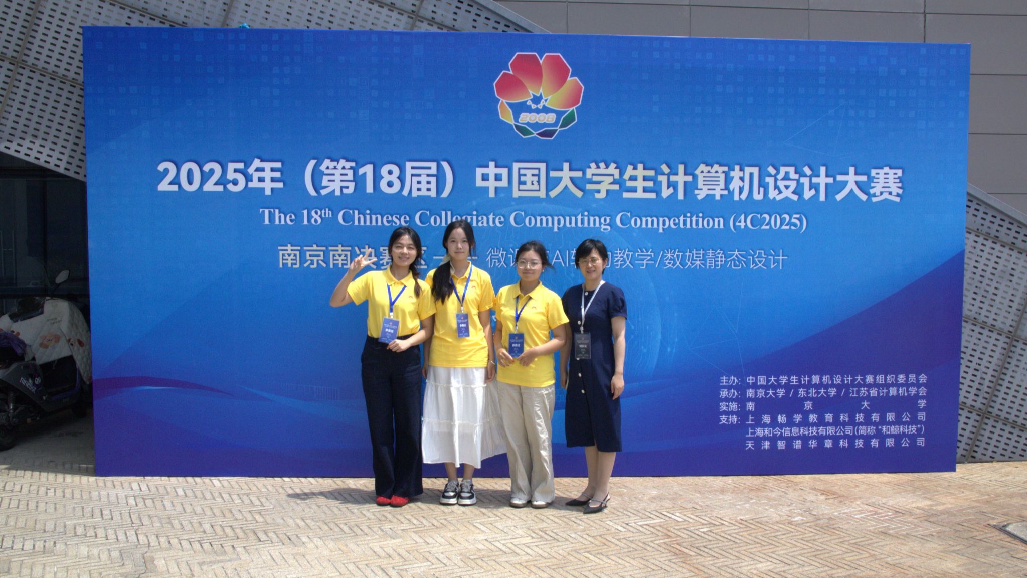 7月22日-25日,2025年(第18届)中国大学生计算机设计大赛国赛(南京南赛区)在南京大学仙林校区举行。在校赛、省赛选拔基础上,taptap点点教育技术系有两支队伍参赛。指导教师韦伟、杜杉杉随队同行。