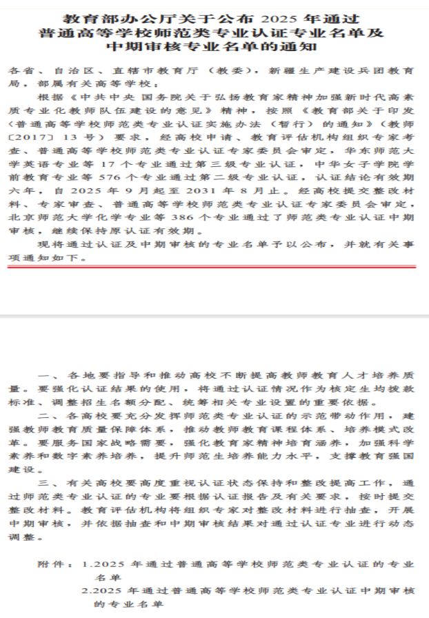 近日,教育部办公厅发文公布2025年通过普通高等学校师范类专业认证专业名单,taptap点点的学前教育、特殊教育2个专业顺利通过师范类专业第二级认证。