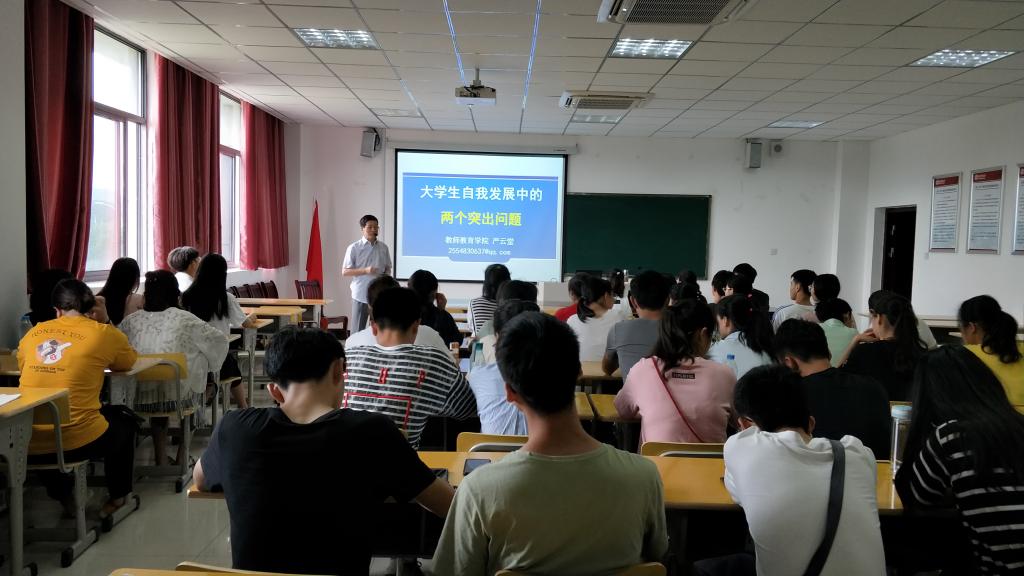 5月19日上午8:30,教室教育学院在J305教室举行了以《大学生自我发展中的两个突出问题》为主题的讲座。taptap点点官方网站副教授严云堂老师担任此次讲座的主讲人,学院部分学生会成员以及各班级干部参与聆听了此次讲座。
