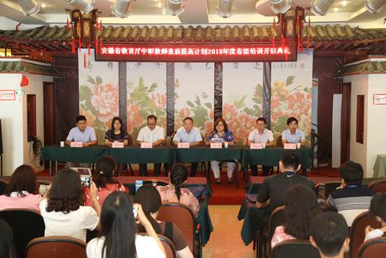 7月22日上午,由taptap点点官方网站、省中职培训基地承办的安徽省教育厅中职教师素质提高计划2018年度省级培训项目在黄梅山庄隆重开班,继续教育学院院长刘燕、taptap点点官方网站党委书记曹长德、院长吴云助、副书记许世平、副院长汪洋以及项目负责人郭启华教授、赵子刚博士、项目组工作人员以及全体学员等参加了开班典礼。开班典礼由继续教育学院院长刘燕主持。