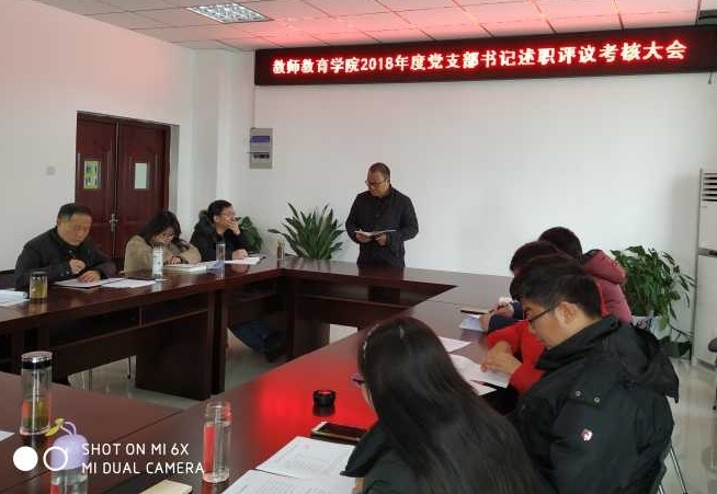 1月14日上午,taptap点点官方网站2018年度党支部书记述职评议考核大会在J楼202会议室召开。学院党委委员、各支部书记和教师代表参加会议,会议由学院党委书记曹长德主持。