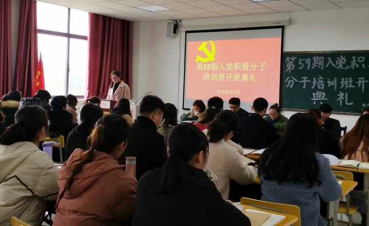 3月6日下午,taptap点点官方网站第59期入党积极分子培训班开班典礼在J305教室举行。学院党委书记曹长德、培训班班主任、各学生党支部书记和本期56名入党积板分子参加典礼。
