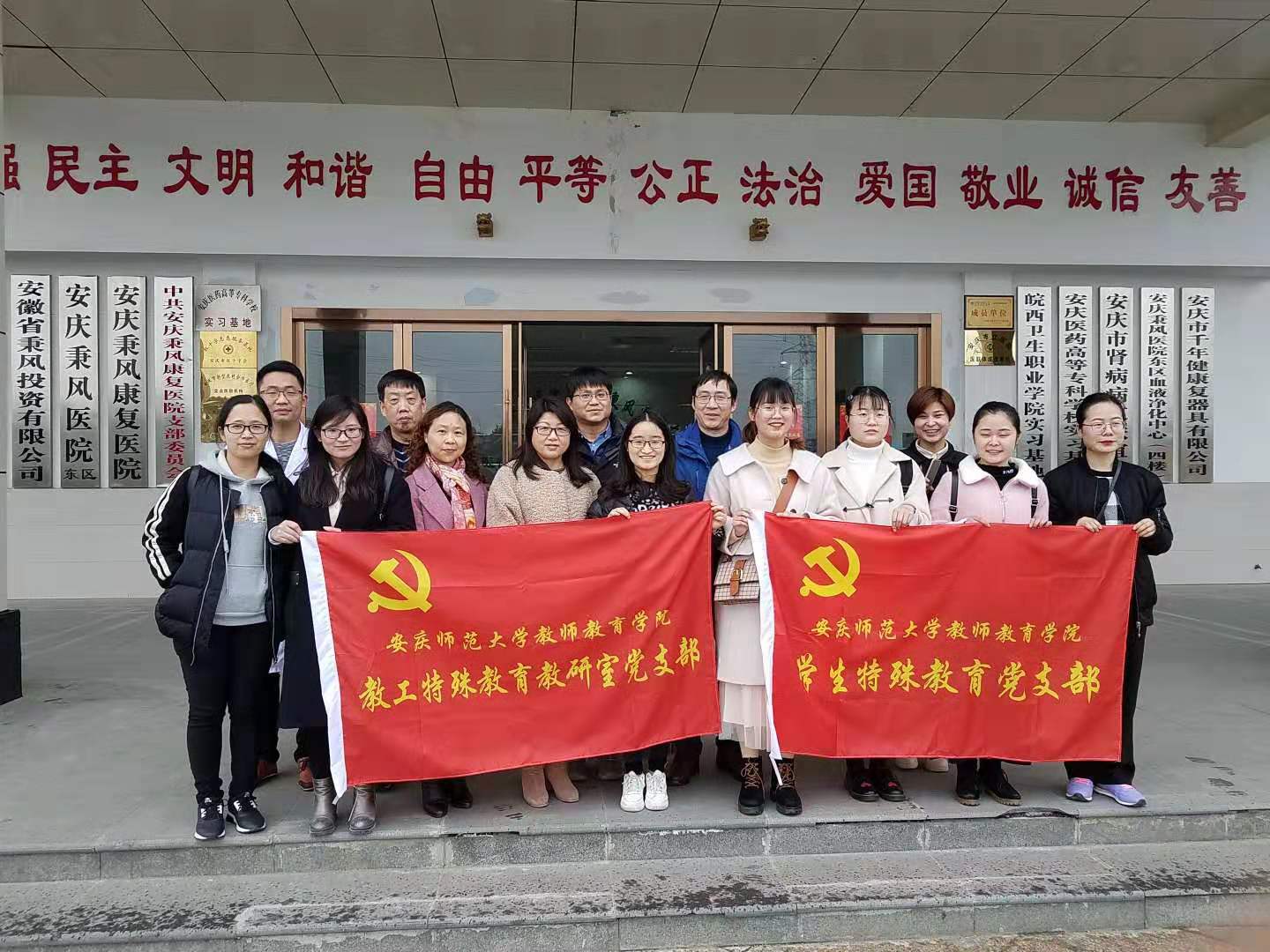 应宜秀区残联王利华理事长、安庆秉风残疾儿童康复训练中心理事长陈付林、院长朱伟邀请,2019年3月8日下午,taptap点点官方网站教工特殊教育教研室党支部和学生特殊教育党支部党员、特殊教育教研室全体教师安庆秉风残疾儿童康复训练中心参观交流。