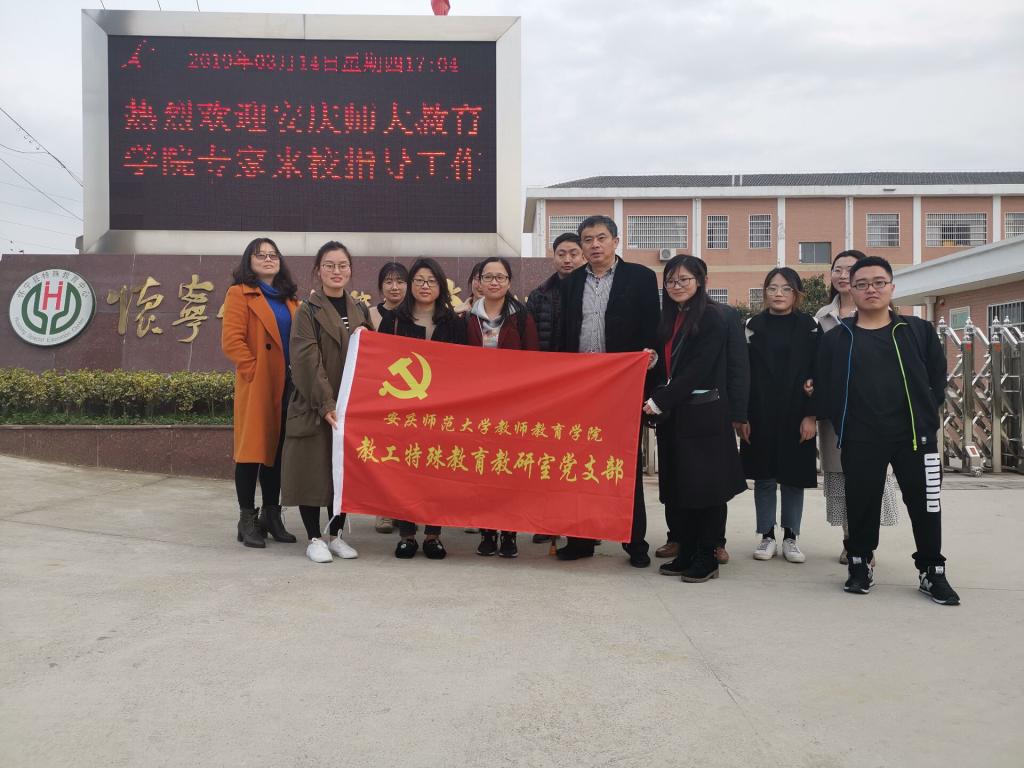 3月14日下午,应怀宁县特殊教育中心何祥贵校长的邀请,特殊教育专业负责人、教工特殊教育教研室党支部书记郭启华教授与教研室教师、2018级特殊教育专业硕士赴怀宁县特殊教育中心开展专业交流,同时看望在学校实习和支教学生。