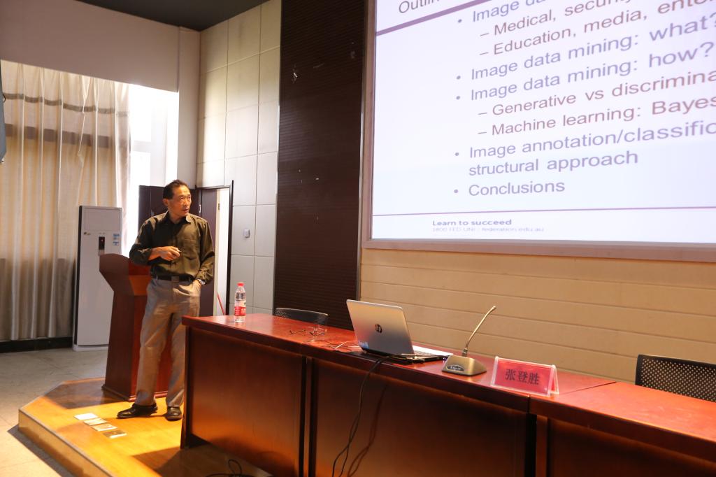 张博士主要从为什么进行图像数据挖掘、图像数据挖掘是什么以及图像数据挖掘如何实现三个方面进行阐述。报告中,张博士首先对图像数据挖掘的重要性和其实质进行了讲解,其次介绍了四大主要机器学习技术在图像数据挖掘中的应用,最后主要介绍了他和同事们在图像数据挖掘方面所做的一些工作。张博士的报告图文并茂,深入浅出,为学生扩展了专业知识。报告后,张博士与听众进行了互动交流,对大家提出的问题进行一一解答。同时也表示欢迎对图像数据挖掘感兴趣的同学去澳大利亚继续学习深造。