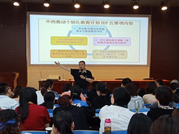 在本次讲座中,林教授围绕着评估式个别化教育计划设计与实践这一主题,系统详细地介绍了学生能力及家庭现况评估、学生课程教学调整及相关服务、长期与短期教育目标达成评量、情绪与行为问题功能性评估及正向行为干预方案、学生教育阶段与离校转衔辅导及服务等IEP制定的具体操作方法。尤其针对情绪行为障碍学生分享了评估和干预方案的经验,介绍了正向情绪行为介入量表以及相关的筛查和转介量表,并在讲座现场依据参会人员提供的案例进行了现场演示,就评估后如何拟定干预方案进行了讨论。林教授的讲座紧密结合了特殊教育实际,又有丰富的案例分享,评估工具简便易行、操作性强、适用于各类特殊儿童。聆听讲座者均表示此次学习对自己专业水平的提升作用巨大,会在日后的工作和学习中进一步实践运用。讲座现场气氛热烈,现场提问积极踊跃,参会者多次以热烈的掌声回应林教授的精彩分享。