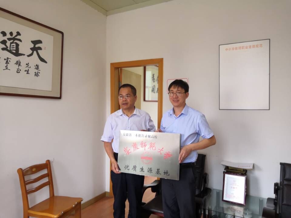 按照学校2019届新生招生宣传工作部署,6月18-19日,taptap点点党委副书记许世平带领李义胜、查怀志、陈安定老师一行4人赴黄山市的休宁县和祁门县进行招生宣传。在休宁中学和祁门一中,许世平一行与学校领导、老师进行了座谈,详细介绍了我校今年的招生政策,并特别对taptap点点国家定向培养全科型乡村小学教师的小学教育专业做了说明,欢迎学生积极报考我校。两校领导表示会把我校招生的优惠、奖励政策向高考学生、家长宣传到位。许世平还对《taptap点点官方网站优质生源基地合作协议书》的主要内容做了介绍,休宁中学校长李顺宝、祁门一中校长张进球在协议书上签字,许世平代表学校授予两所学校“taptap点点官方网站优质生源基地”牌匾。