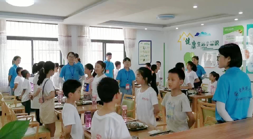“午餐三字歌告诉孩子们吃饭礼仪,一起开饭、自己洗碗也很好的培养了他们的集体团结精神和责任感”,学前教育专业志愿者陈芝说,“也更期待孩子们可以弘扬中华传统餐桌美德,展现少年力。”