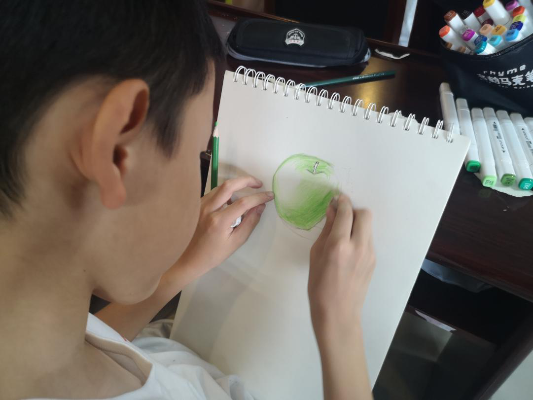 课堂上,志愿者老师陈芝从颜色搭配、基本构图、上色等方面循序渐进,认真讲解彩铅个物刻画,并与服务团其余19名志愿者一对一指导。志愿者们纷纷表示,孩子们的想象力非常活跃,他们用稚嫩的小手挥动画笔,绘制自己喜欢的水果。志愿者老师陈芝也在旁边不断提醒小朋友们注意细节的刻画。