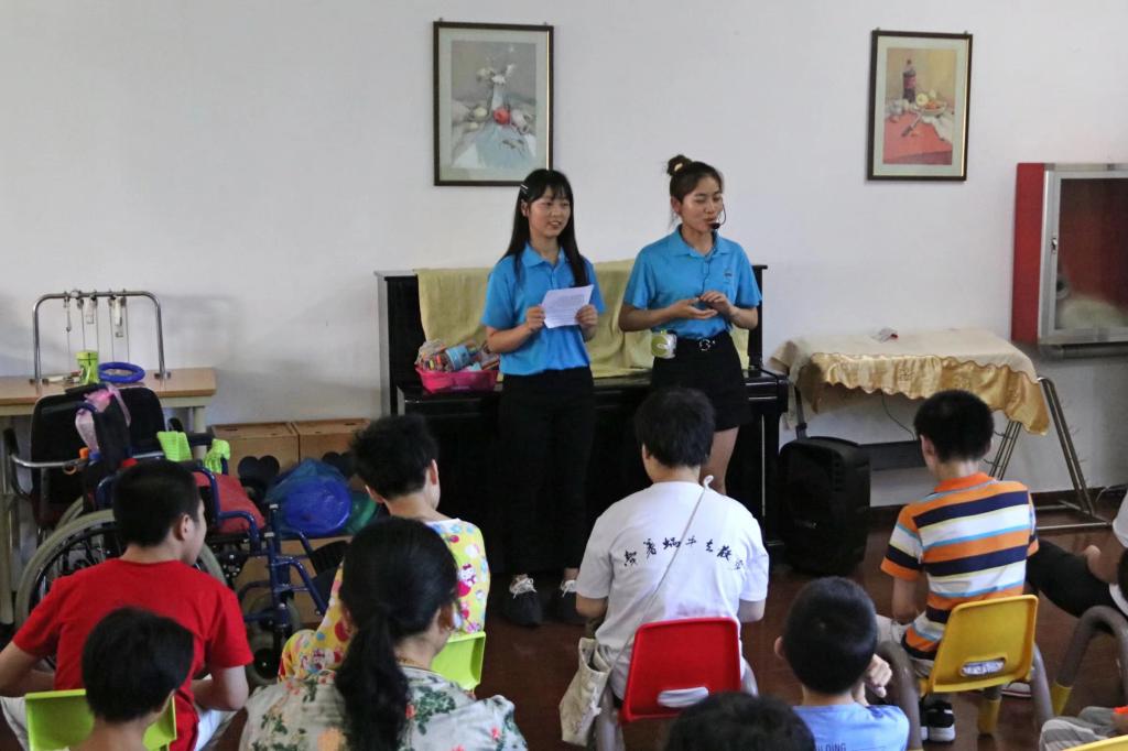 实践服务团成员应用心理学专业2017级黄雅芬和陆婷婷开展了团体心理辅导课。随着《如果感到幸福你就拍拍手》的音乐,近40余名的脑瘫儿童在家长和志愿者的帮助下拍起手动起脚。