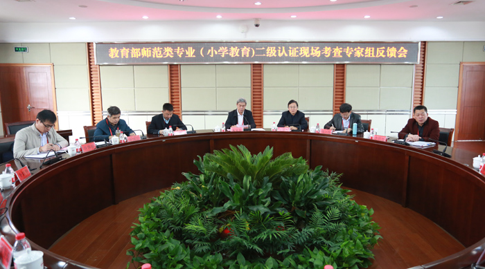 闵永新代表学校对专家组的辛勤付出和专业指导表示衷心感谢。他指出,专家组的反馈意见在肯定我校小学教育专业建设成效的同时,重点指出了存在的问题和不足,给出了非常中肯、非常宝贵、极具建设性的意见和建议,把脉十分到位,诊断十分准确,体检报告十分权威,开的药方十分对症,这对我校小学教育专业未来发展具有十分重要的指导意义,同时也对我校其他师范专业的建设都有极其重大的启发意义。对抓好今后的整改工作,他提出三点要求,一是要高度重视专家反馈意见,坚持问题导向,以坚定不移的态度坚决抓好整改工作。二是要坚持优先发展教师教育,突出内涵建设和特色发展,以更高的标准提升师范类专业人才培养质量。三是要坚持以评促建,全面深化师范类专业教学改革,扎实推进一流师范专业建设。