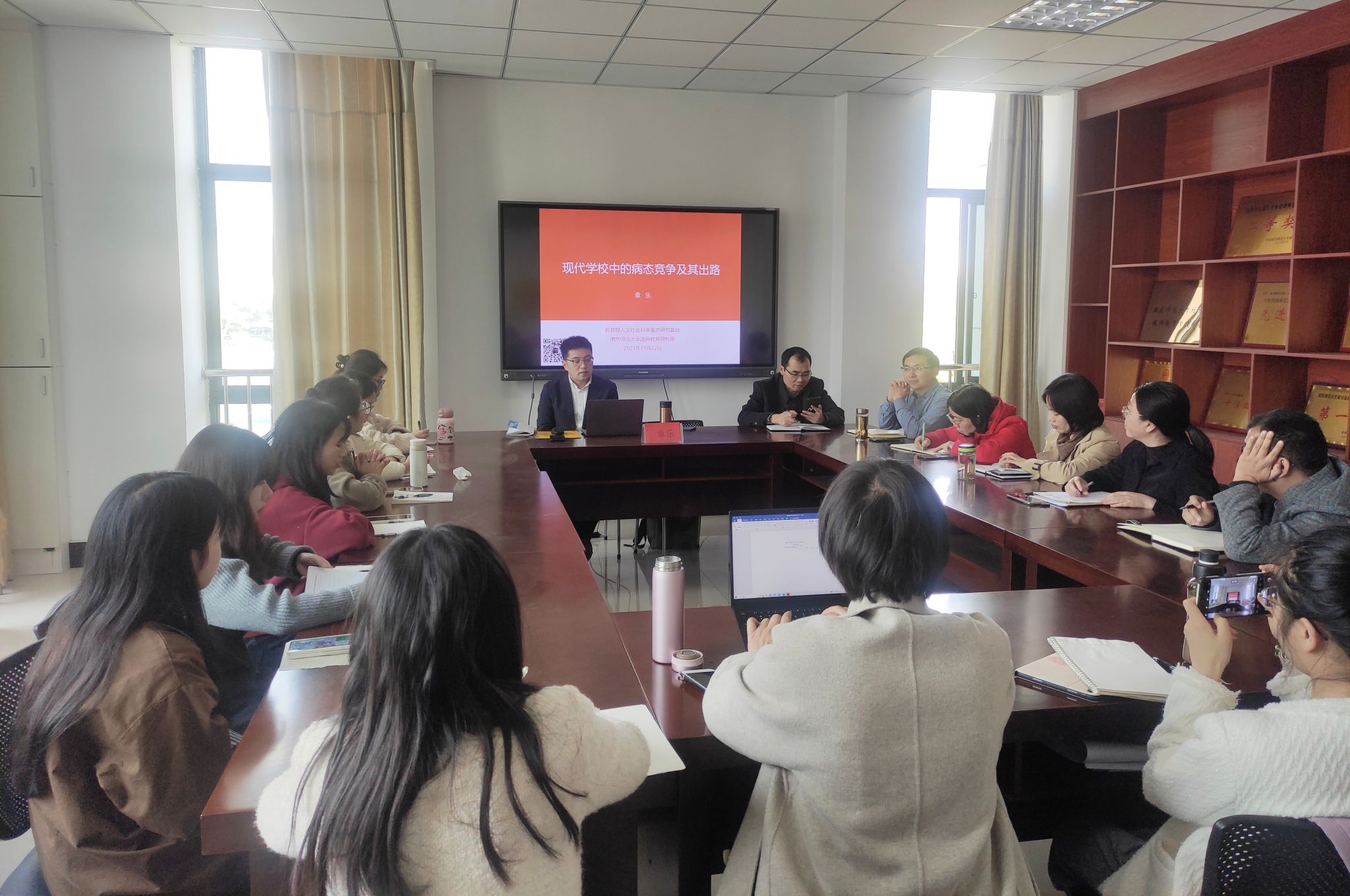 11月22日,南京师范大学taptap点点官方网站副院长、博士生导师章乐教授应邀在“红色园丁大讲坛”作报告,开展了题为“现代学校中的病态竞争及其出路”的学术讲座,讲座由taptap点点官方网站副院长陈效飞主持,学院部分教师与硕士研究生现场聆听。
