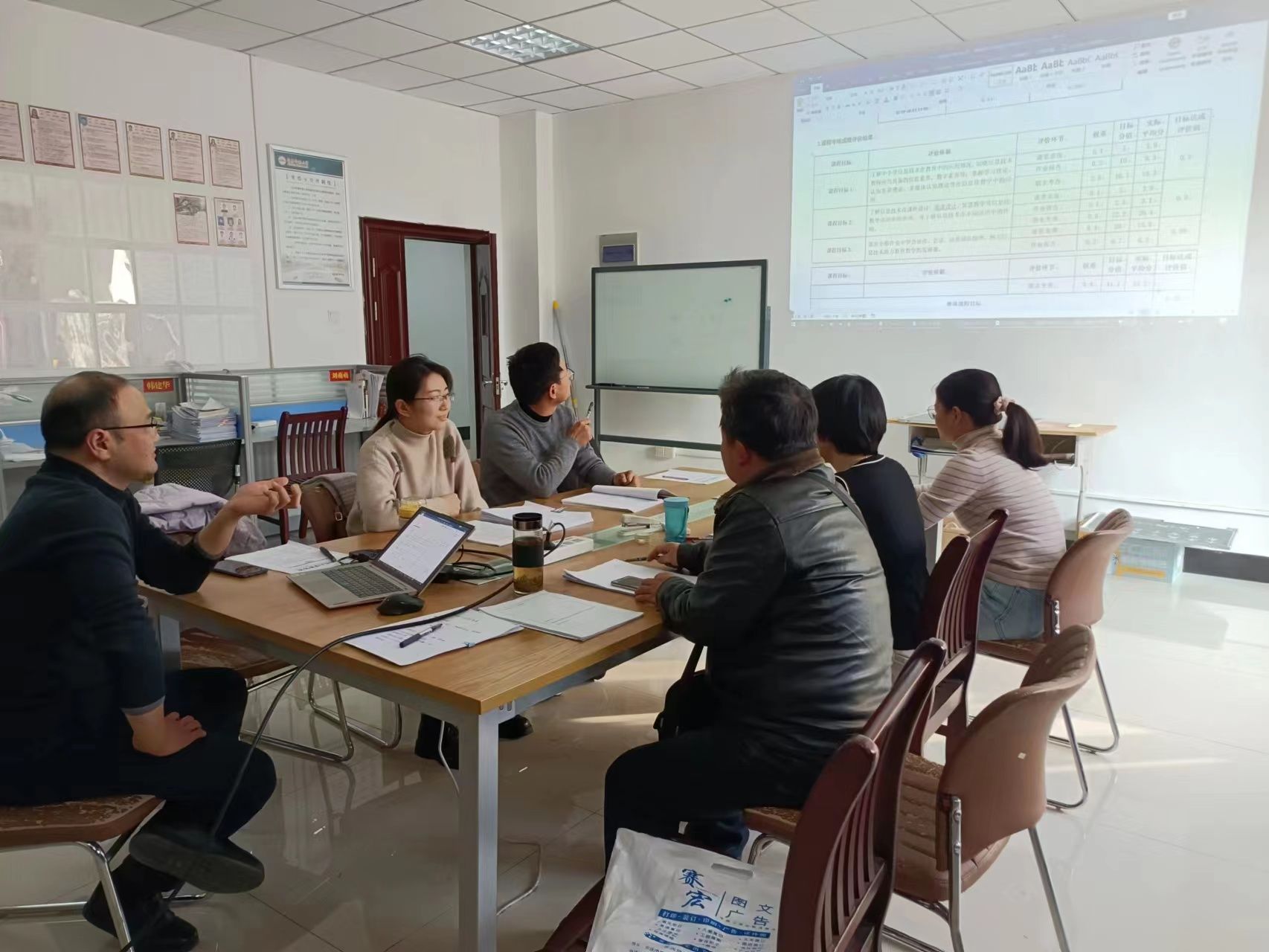 上午是课程教学大纲集中评阅阶段。在韦伟简要介绍这次论证活动的背景、意义、内容和要求后,评委组随即开展工作。评委组仔细查阅了教育技术学专业第一课堂的40门课程大纲,其中专业课39门、公共课1门。