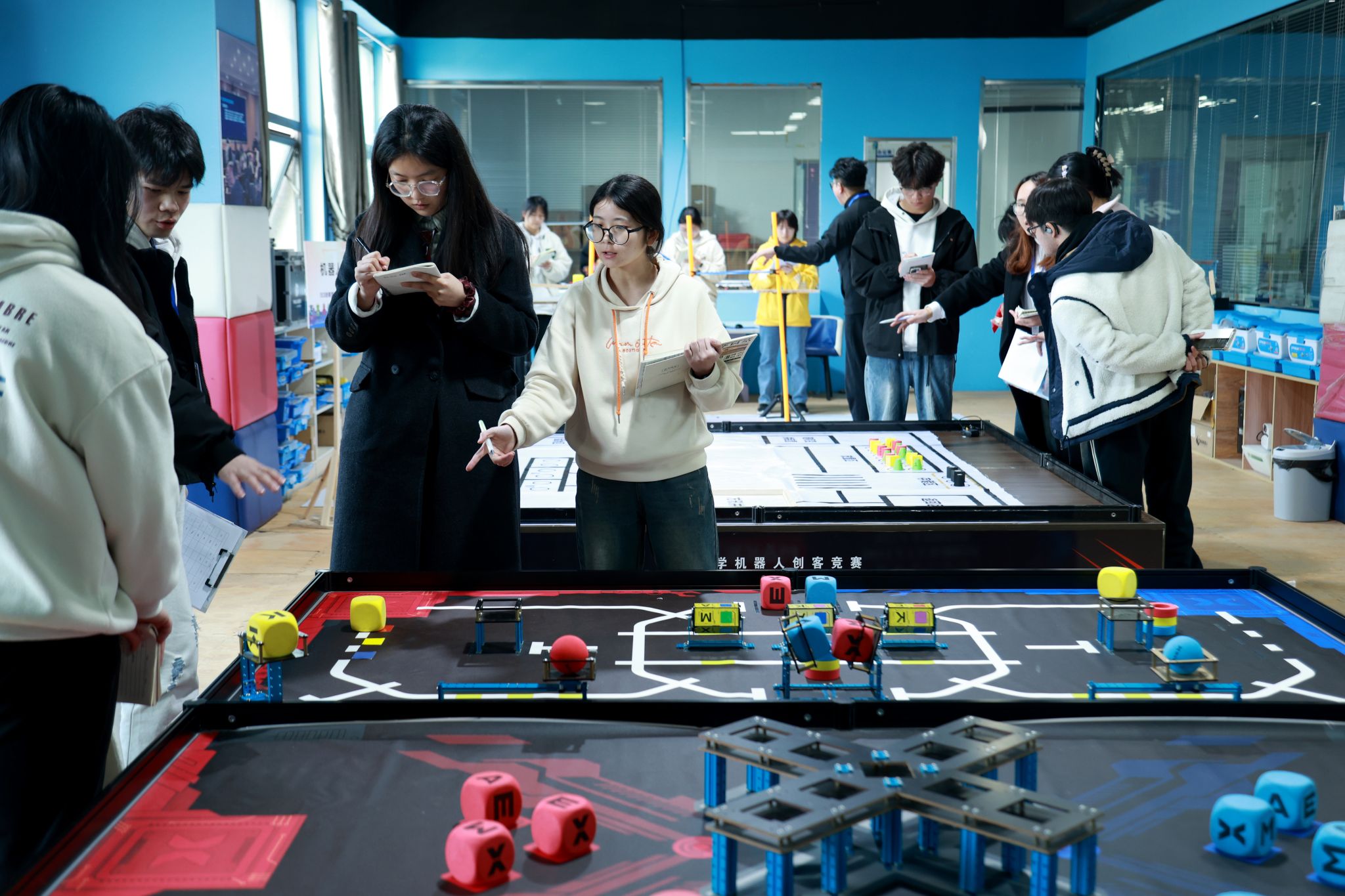 公司CEO夏恩峰在简单阐述培训活动目的、安庆市创客比赛赛程安排之后,将参训学生按创客竞赛赛道进行分组,并分别由各组主讲讲师全程讲解。在无人机、轮式履带机器人、MakeX、创想未来、Enjoy AI、多足仿生机器人等7个赛道,教育技术学专业学生先后熟悉了比赛项目、比赛流程,掌握了竞赛规则、得分要点,模拟了执裁现场、评分尺度,较好的完成了此次裁判员的培训任务,获得企业和基地版发的裁判员聘任证书,为后续安庆市中小学创客竞赛的执裁工作打下坚实基础。(撰稿:韦伟 摄影:查怀志 审核:王皓宇)
