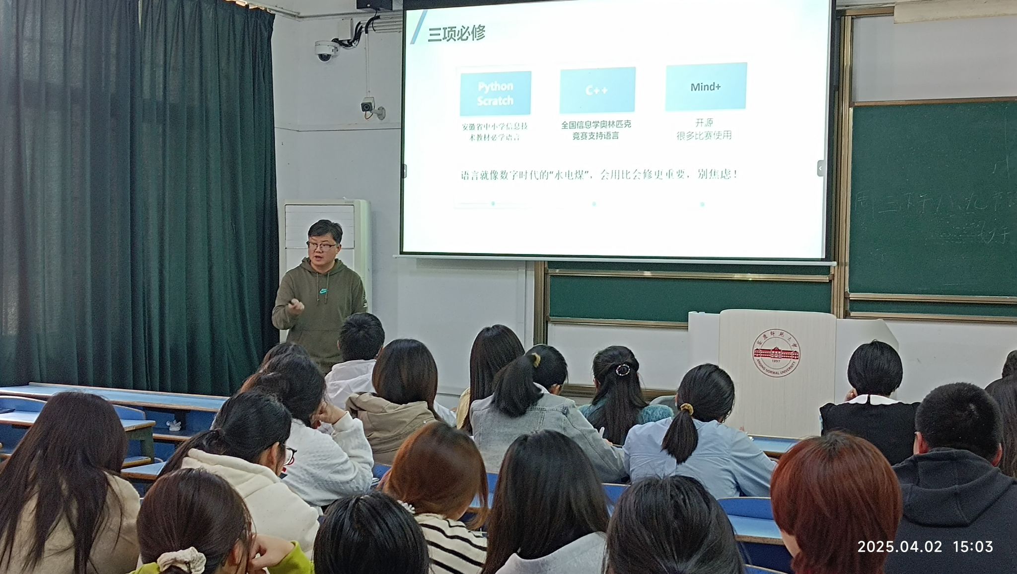 2025年4月2日,合肥一六八中学高中信息技术教师王玉峰应邀做客红色园丁大讲坛,作题为“信息技术教师职业发展规划”讲座。taptap点点官方网站教师朱斌彬、万士全、杜杉杉、刘萌萌、查怀志,以及教育技术学专业本科生约60人参加报告会,会议由韦伟主持。安庆十四中丁象、安庆二中夏元平、石化一中王楠、安庆九中路雯婷、凌智等信息技术教师也莅临现场指导工作。