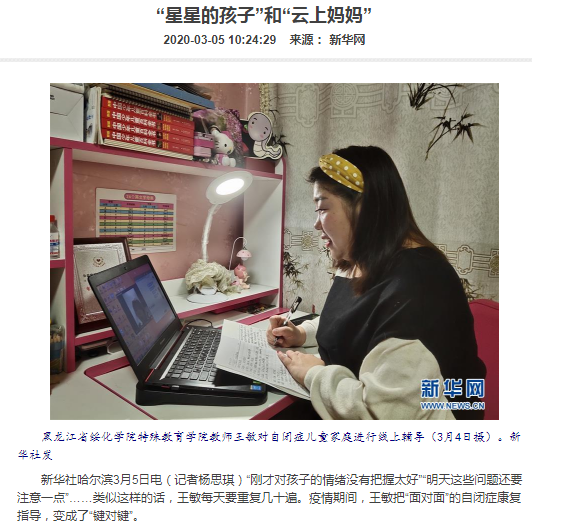 特教专业师生通过党组织、红十字会、慈善会等多种渠道进行捐款共计2890元,在行动上积极配合所在社区和村委会,2019级特殊教育专业同学高莉还主动为疫情值守工作人员送水和食物,表达对于疫情工作的敬意。教研室主任郭启华教授申请成为社区志愿者,开展抗“疫”心理援助,用自己的专业开展心理健康帮扶。2019级特殊教育专业研究生王敏揪心自闭症孩子的教育,她通过电话和网络等方式为自闭症家庭提供教育康复服务,成为“星星孩子”的“云上妈妈”。王敏的事迹被新华社(国内和海外)和中国教育报等主流媒体广泛报道,传播了特教人的正能量。