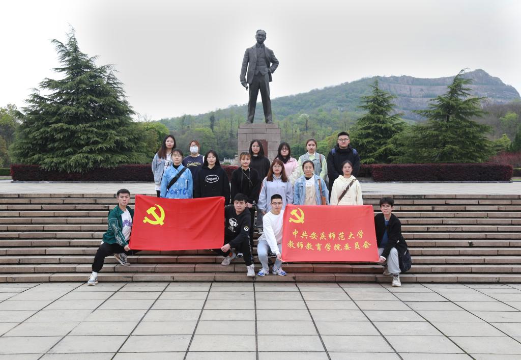 “陈独秀先生是我们安庆人,是新文化运动的领袖和《新青年》杂志的创办者,更是中国共产党的创始人和早期的主要领导人之一……”在陈独秀先生的铜像前,同学们认真聆听了对陈独秀生平以及党的早期发展史的讲解,先后瞻仰了石牌坊、惊雷浮雕、雕像广场和陈独秀墓。在《敬告青年》的石雕旁,同学们回顾了中国共产党创立的艰辛历程,体会到了中国共产党坚贞不屈、勇往直前的开拓精神,增强了历史使命感和时代责任感。在陈独秀墓前,全体成员行鞠躬礼,表达了对陈独秀先生的深切缅怀和敬佩之情。