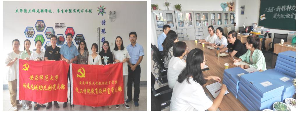 9月14日,taptap点点官方网站附属龙城幼儿园党支部书记许世平、幼儿园园长姚萍一行来到教工特殊教育教研室党支部进行党建工作交流。
